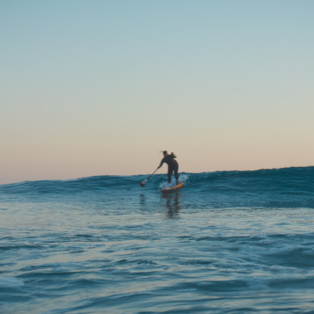 On the first day we pick the right stand up paddle board, paddle and wetsuit for you. Then we decide based on the wave, wind and weather conditions to which beach we go.