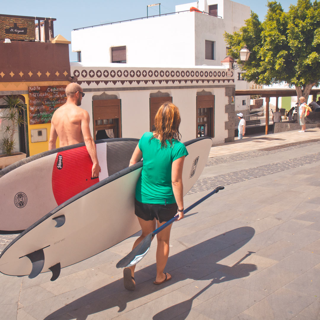 Jandia can be reached in about 15 minutes on foot on the beach promenade or simply as a SUP tour along the beach. The clean and small waves there are ideal for sup surfing.